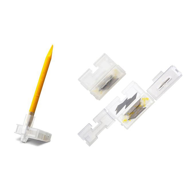 Profesjonalny nóż do prac artystycznych i modelarskich. Do dokładnego cięcia folii, papieru, kartonu, itp. z ostrzem o kącie wierzchołka 30 stopni. Metalowy uchwyt ostrza. W komplecie po 30szt. ostrzy zapasowych w plastikowym pojemniku oraz igła o średnicy 1,5mm do precyzyjnych plac modelarskich, plastycznych i artystycznych. Ilość 1szt.
