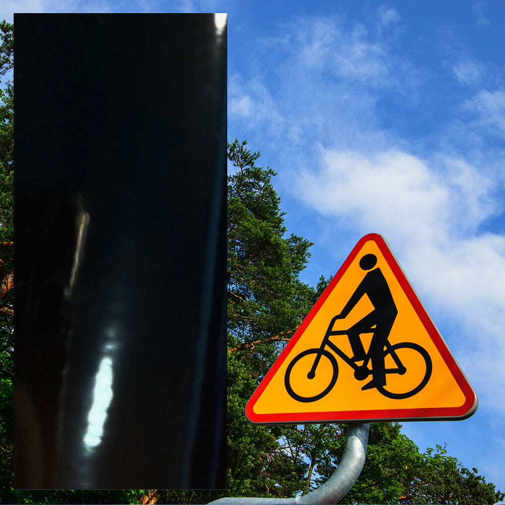 Samoprzylepna folia odblaskowa 1 generacji o grubości 110 mikronów, została stworzona do produkcji pionowych znaków drogowych i tablic informacyjnych o długim okresie trwałości i wysokiej odporności na korozję i działanie rozpuszczalników. Folia posiada w swojej strukturze system kulek szklanych zatopionych w transparentnej masie plastycznej. Gładka powierzchnia zewnętrzna zapewnia odporność folii na zarysowania i uderzenia oraz wykazuje bardzo dobre właściwości zadrukowywania sitodrukiem. Folia może być naklejana na powierzchnie metalowe, aluminiowe oraz wykonane z blachy ocynkowanej.