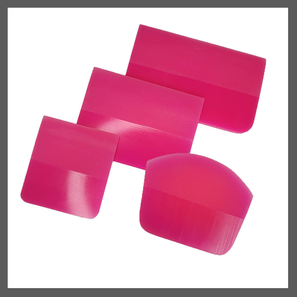 Zestaw 4 rakli silikonowych do aplikacji folii PPF różowe miękkie